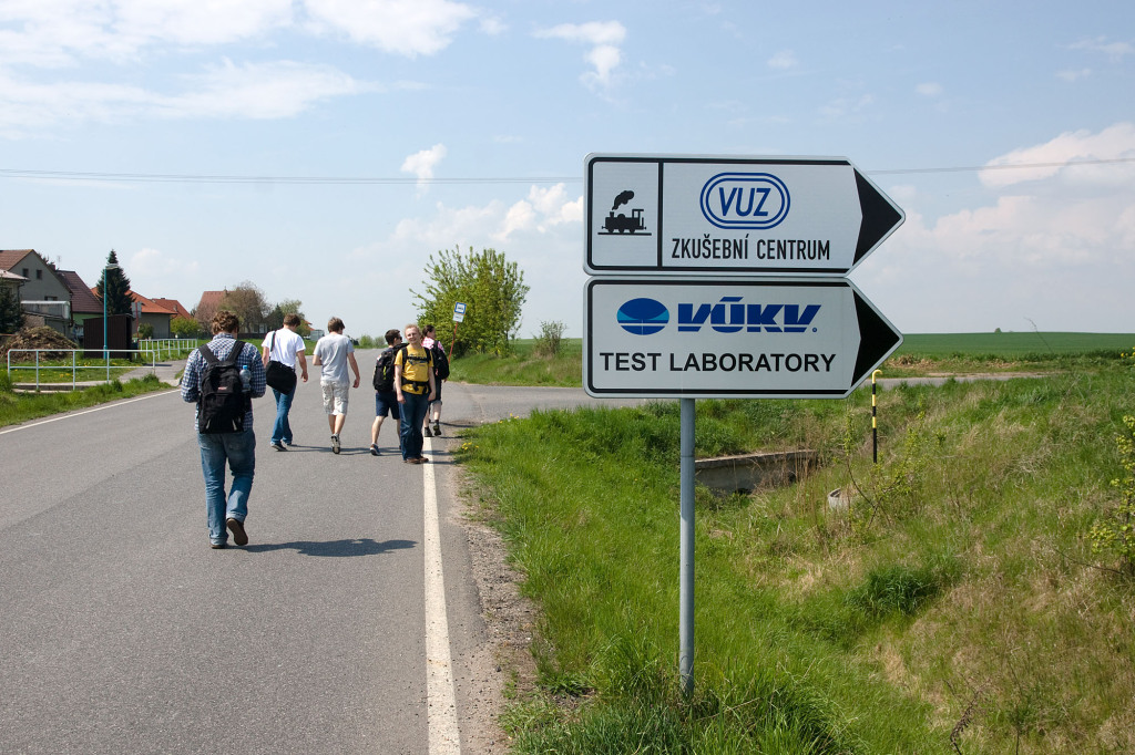 Fünf Dresdner und bis zu sieben Prager Verkehrsstudenten machten sich am letzten Aprilwochenende auf den Weg zu verschiedenen Verkehrsstandorten in der Tschechischen Republik. Los ging es am Freitagmorgen von Dresden aus über Prag zum Eisenbahn-Testring in Velim. Hier bekamen wir eine zweisprachige Führung durch einen Mitarbeiter und einen Einblick in die umfangreiche Arbeit des Testcenters, das auch Materialprüfungen vornimmt. Highlight zum Abschluss unseres Besuches war dann eine Fahrt über den Testring, der in den 60er Jahren errichtet wurde und als einziger in Mitteleuropa Geschwindigkeiten von bis zu 200 km/h ermöglicht. Eine Runde ist gut 13 km lang, es können alle gängigen Spannungen eingespeist werden. Unser Fahrzeug war eine Siemens-Lokomotive der belgischen Baureihe 18, von deren Höchstgeschwindigkeit wir uns bei einer Testfahrt selbst überzeugen konnten.