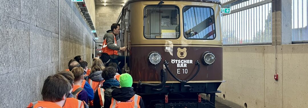 Als nächstes besichtigen wir die Betriebsstätten am Alpenbahnhof. Neben der „Himmelstreppe“ (die Regelzüge – don’t call it Triebwagen) betreiben die Niederösterreich Bahnen auch touristische Verkehre am Wochenende, wie den Nostalgiezug „Ötscherbär“. Klaus beschreibt technische Besonderheiten der historischen Elektrolokomotiven und zeigt uns den Führerstand. Am Beispiel eines offenen Aussichtswagens erklärt er uns die Sicherheitsanforderungen, die an solche Spezialfahrzeuge gestellt werden.
