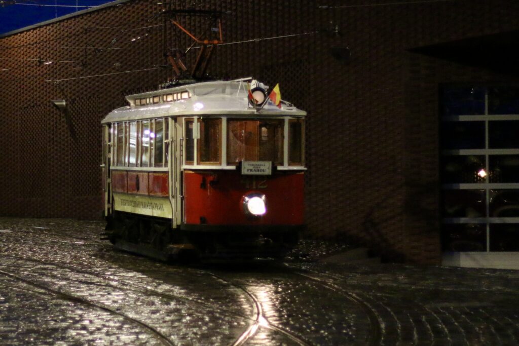 Den Abschluss der Reise bildet ebenfalls ein historisches Fahrzeug. Dank der Förderung von Spätverkehr e.V. können wir den Ringhoffer-Wagen Nr. 412, Baujahr 1920, für eine Sonderfahrt chartern. In der Dämmerung fahren wir gemütlich kreuz und quer durch die Stadt und überqueren dabei fast alle Moldaubrücken.